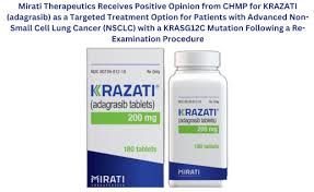 Adagrasiib is a prescription drug used to treat non-small cell lung cancer (NSCLC) in adults: patients whose tumors have spread to other parts of the body or cannot be removed by surgery, whose tumors have an abnormal KRAS G12C gene, and who have received at least one cancer treatment. Doctors will conduct tests to make sure adagrasib is suitable for patients. It is not yet clear whether adagrasib is safe and effective in children. KRAS produces a protein that, when mutated, like KRAS G12C, can trigger a domino effect that leads to cancer. Adagrasib is designed to target KRAS G12C to inhibit tumor growth.