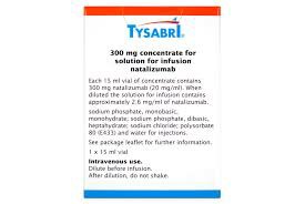 The active ingredient in Natalizumab is a monoclonal antibody that targets an integrin on white blood cells called α4β1 that is involved in inflammation. Natalizumab is thought to reduce inflammation and resulting nerve damage by blocking white blood cells from entering brain and spinal cord tissue by binding to integrins. This helps reduce disease symptoms. Natalizumab is also indicated to induce and maintain clinical response and remission in adult patients with moderately to severely active Crohn's disease (CD) who have evidence of inflammation and are inadequately responsive to or intolerant to conventional CD therapies and TNF-alpha (tumor necrosis factor, a substance that causes inflammation in the body) inhibitors.