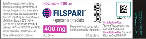 The binding rate of sparsentane to human plasma proteins is over 99%. Sparsentanis mainly metabolized by cytochrome P450 3A. Sparsentine is primarily excreted in feces and urine. After giving a single dose (400 mg) radiolabeled sparsentane in healthy subjects, approximately 80% of the dose was recovered in the feces (9% unchanged) and 2% was recovered in the urine (a negligible amount unchanged). During the 10 day collection period, 82% of the dosed radioactivity was recovered. The half-life of sparsentineat steady state is estimated to be 9.6 hours. Sparsentan has a time-dependent clearance, possibly due to its induction of its own metabolism over time. After an initial dose of 400 mg, the apparent clearance of sparsentane is 3.88 L/h. At steady state, the apparent clearance increases to 5.11 L/h.