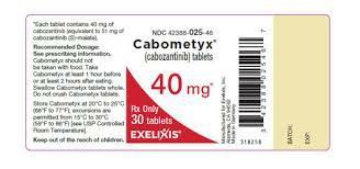 Cabozantinib (Cabozantinib) belongs to the kinase inhibitor class of drugs. It works by blocking the activity of an abnormal protein that signals cancer cells to multiply. This helps slow or stop the spread of cancer cells. Cabozantinib is available in oral forms as tablets (Cabometyx) and capsules (Cometriq) and is usually taken once daily on an empty stomach, at least 1 hour before and 2 hours after a meal.