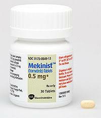 The approval of trametinib was based on demonstration of improvement in progression-free survival (PFS) in a multicenter, international, open-label, randomized, active-controlled trial. Approximately 50% of patients with cutaneous melanoma have BRAF gene mutations. Concurrently with the approval of dabrafenib and trametinib, the FDA approved the THxID BRAF test for the detection of BRAF V600E and BRAF V600K mutations. Trametinib is a tyrosine kinase inhibitor that inhibits the growth and spread of tumor cells by binding to these fusion proteins and blocking their activity.