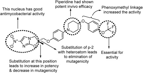 Delamaniworks by blocking the production of methoxy and ketomycolic acids and the production of nitrous oxide through the mycobacterialF420pathway. It works by blocking the formation of mycolic acid, which is required for the survival of mycobacteria, it requires activation of the mycobacterialF420system.