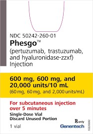 Pertuzumab and trastuzumabgiven by intravenous infusion have been authorized together to treatHER2-positive breast cancer. A major study of 500 patients showed that subcutaneous injection of Phesgo was as effective as this combination. The study showed that pertuzumab and trastuzumab levels were similar in the blood of patients who received Phesgo and those who received the combination via infusion. Additionally, about 60% of patients in both groups (150 of 252 in the Phesgo group and 148 of 248 in the Pertuzumab and trastuzumab groups) had no signs of cancer in the breast and armpit glands after one year of treatment.