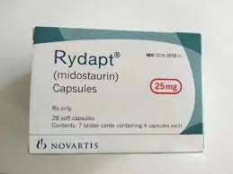1.Acute myeloid leukemia (AML): Midostaurin is used in newly diagnosed adult AML patients, including FLT 3Gene mutation to FLT3-ITD (internal duplication) or FLT3-TKD (tyrosine kinase domain) positive.
