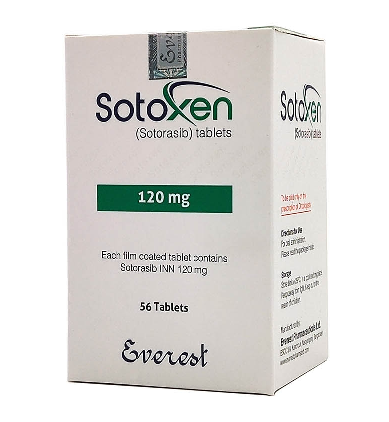 During the first 3 months of treatment, monitor liver function tests every 3 weeks (i.e. AST, ALT, total bilirubin< span>), then monitor monthly or as clinically indicated, More frequent monitoring may be required in patients who develop hepatotoxicity, Monitor for new or worsening pulmonary symptoms (e.g., dyspnea, cough, fever) indicative of interstitial lung disease or pneumonia. Not clear yetSotorasibuor whether its metabolites are distributed into breast milk, and it is not known whether the drug has any effects on lactation or on the breastfed infant. Because of the potential for adverse reactions to sotoraxib in breastfed infants, it is recommended that women not breastfeed during treatment with the drug and for 7 days after stopping the drug. The retail price of Bangladesh Everest Pharmaceuticals120mg56 tablets is priced from 4000 yuan to 5000 yuan. If you want to get more high-quality information, you can contact YaDE. YaDE will do its best to learn more about high-quality overseas drugs for you.