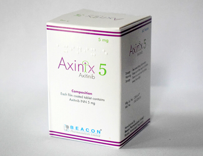 Axitinibis used alone to treat advanced renal cell carcinoma (RCC, a cancer that begins in the cells of the kidney) when another drug does not work in patients. Citinib is used in combination with avelumab (Bavencio) or pembrolizumab (Keytruda) to treat advanced renal cell carcinoma (RCC). Aaxitinib belongs to the kinase inhibitor class of drugs. It works by blocking the activity of an abnormal protein that sends a reproduction signal to cancer cells. This helps slow down or prevent the spread of cancer cells.