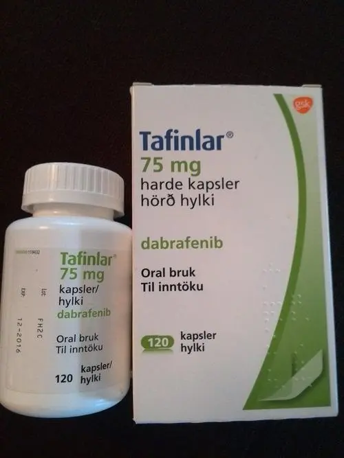 Dabrafenib (Dabrafenib) is an anti-tumor drug used to treat non-small cell lung cancer and melanoma, with significant therapeutic effects. Combination therapy with the BRAF inhibitor dabrafenib and the MEK inhibitor trametinib improved survival in patients with BRAF V600 mutated advanced melanoma.
