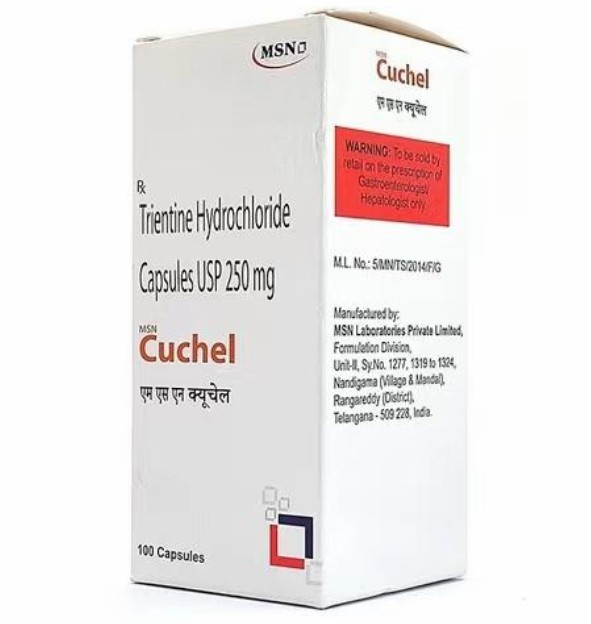Trientine (Trientine) is an oral chelator specifically used for Wilson's disease, with trade names including Cufence and Syprine. It is a drug that targets abnormalities in copper metabolism and is used to provide an alternative treatment in patients who cannot tolerate the first-choice drug, penicillamine. Clinical experience with trientine is relatively limited, and its individual dosage should be adjusted based on the patient's specific response. There is no unified standard. Of note, trientine is not directly interchangeable with penicillamine and is not indicated for use in patients with cystinuria, rheumatoid arthritis, or biliary cirrhosis.